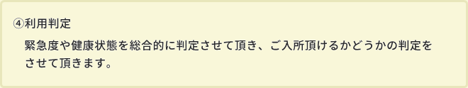 | ※短期入所生活介護サービス契約の締結前に、サンウエストの専用書式によります感染症などに関する健康診断を受けて頂き、その診断書の提出をお願いする場合があります。 |