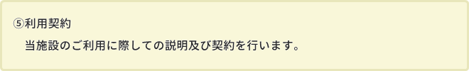 ご契約者に対する具体的なサービス内容やサービス提供方針については、「居宅介護サービス計画(ケアプラン)」がある場合はその内容を踏まえ、契約締結後に作成する「短期入所生活介護サービス計画」に定めます。契約締結からサービス提供の流れは次の通りです。